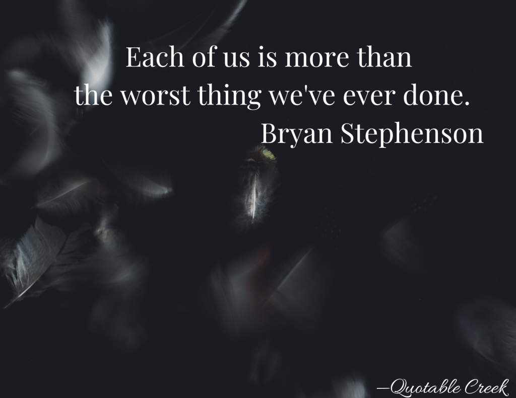 Your pain or hatred or suffering there preserved and public, forever. Bryan Stephenson, an advocate for those on death row cautions us to remember that we are each more than the worst thing we ever did. We are each complex: