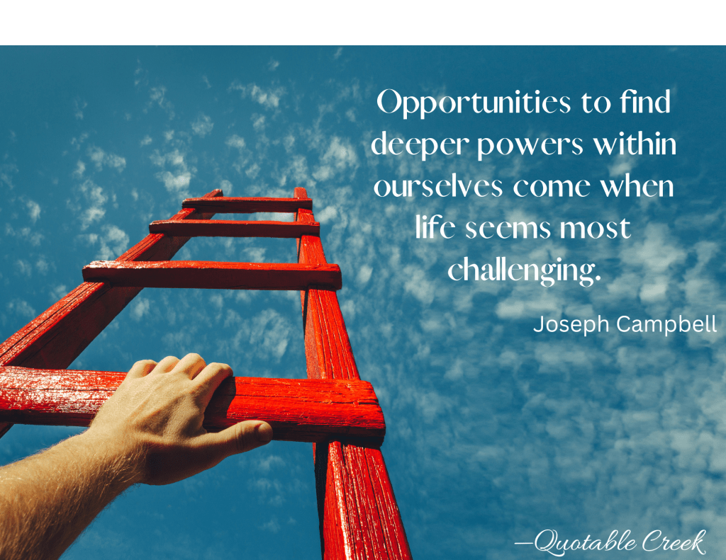 We each decide if we are to be the hero of the story our lives are writing. We each will hear calls to adventure and must decide whether we will rise to the occasion. We each struggle with challenges and learn, or not, from the experience. What will your story be? How will you meet the challenges you encounter?