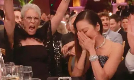 I didn’t watch the Golden Globes, but I was taken with this picture of Jamie Lee Curtis celebrating the success of her co-star Michelle Yeoh: