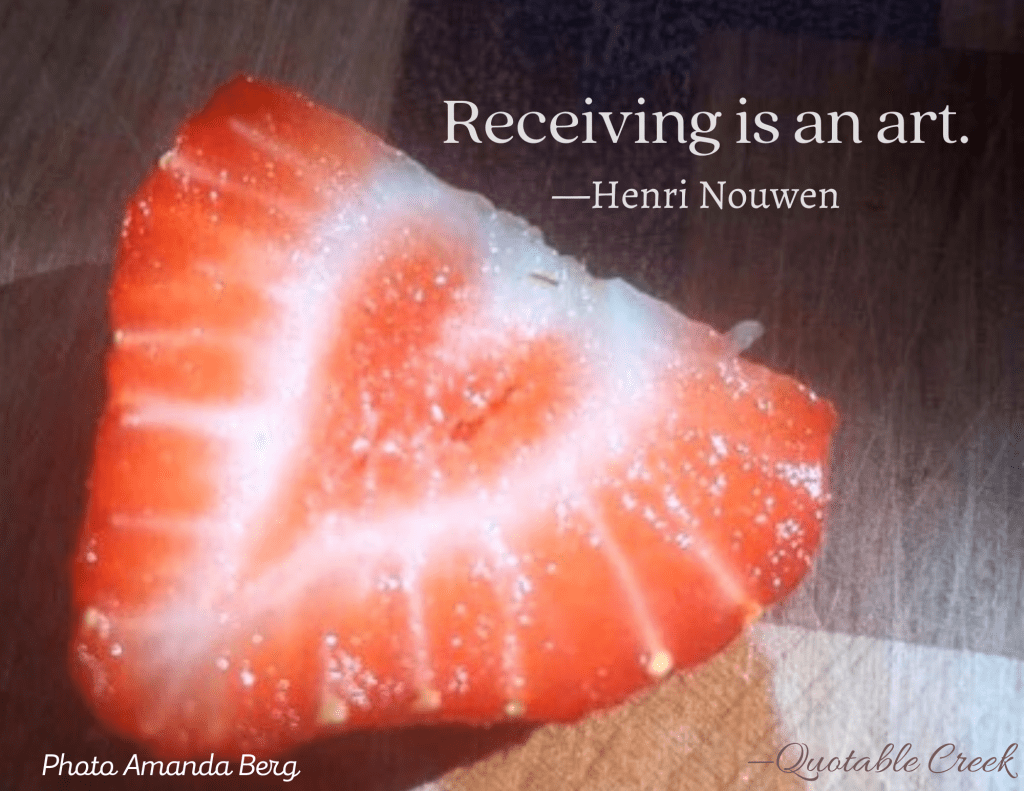 Receiving is an art. It means allowing the other to become part of our lives. It means daring to become dependent on the other. It asks for the inner freedom to say, “Without you I wouldn’t be who I am.” Receiving with the heart is, therefore, a gesture of humility and love. So many people have been deeply hurt because their gifts were not well received. Let us be good receivers.