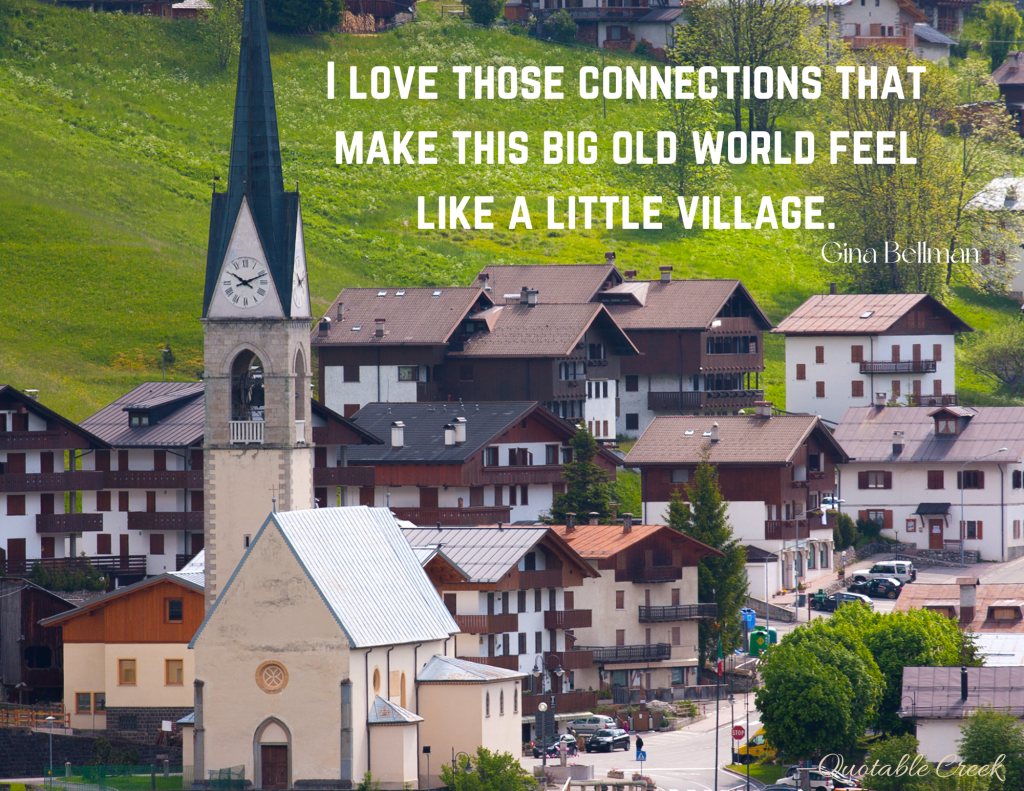 So, too, with the connections among people. There are some obvious superficial connections perhaps— gender, political affiliation, nationality, religion, age. But what of those deeper, hidden ones? How do we find those to help us feel more like a community?