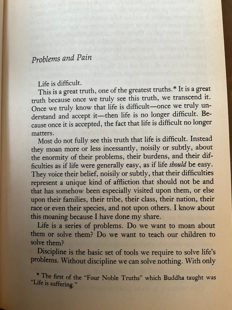 In his book, The Road Less Traveled, M. Scott Peck starts with the given, Life is difficult: