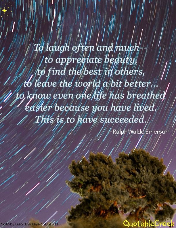 Perhaps true success at this thing called life is as simple as Emerson’s thoughts above. To leave the world a bit better, to ease the burdens of others, to look for and bring out the best in others, to do no harm. These all matter, maybe not in measurable concrete ways, but in ways we can all feel and appreciate if not count. More important, these are all things we each can do. We have the ability to be successful beyond our wildest imaginings.