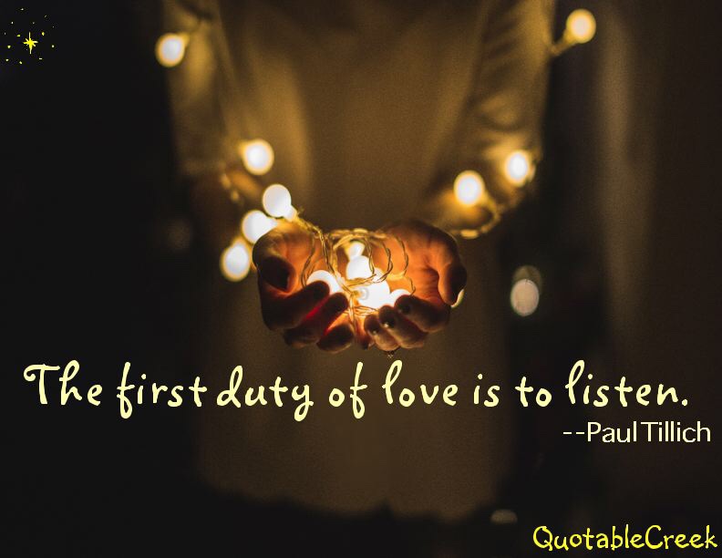 Listening, truly listening–without an agenda, without interrupting, without offering solutions or fixes, without criticism or judgment–is a rare thing. But it is vital to relationships. And it is a gift to be in a position to listen. Someone is trusting you with their story, their feelings, their hurts and hopes. That is precious. How can we best listen to each other?